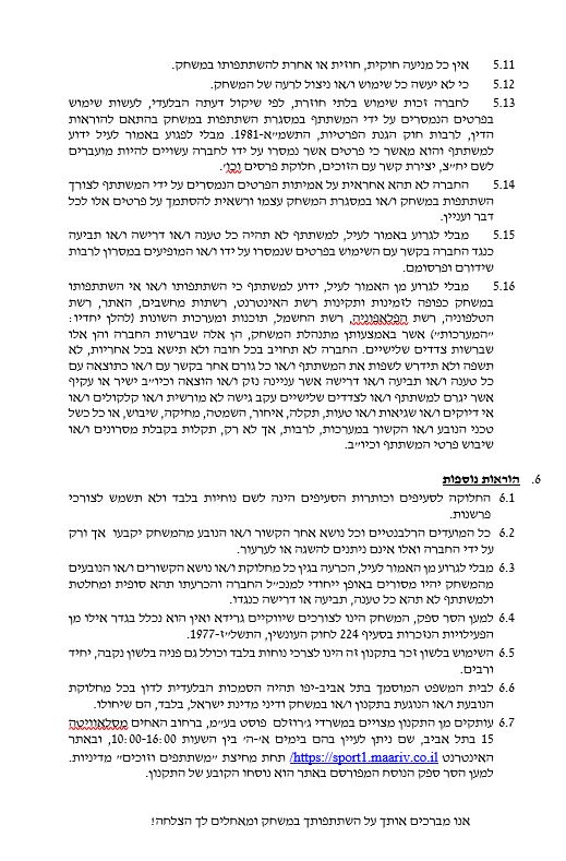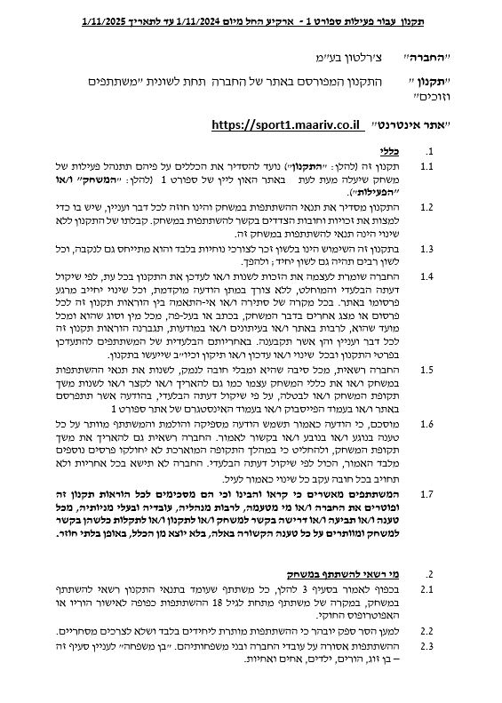תקנון  עבור פעילות ספורט 1 –  ארקיע החל מיום 1/11/2024 עד לתאריך 1/11/2025