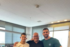 הג'ודוקא בן ה-19 חתם על חוזה אימוץ עם חברת היזמות והבנייה צרפתי צבי ובניו, ובכך חבר לשותפו לנבחרת ולמאיה גושן