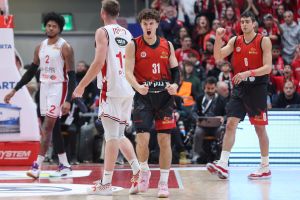 האדומים מצאו עצמם בפיגור דו-ספרתי ברבע השלישי, אך חזרו במאני טיים דרך הנקינס (23 נקודות ו-10 ריבאונדים) ונועם יעקב הצעיר (11 נקודות, 9 מ-9 מהעונשין), כדי לרשום 73:77 ולקבוע דייט לוהט עם מכבי תל אביב בגמר בחמישי. ריימן החטיא שלשה גורלית בסמוך לבאזר