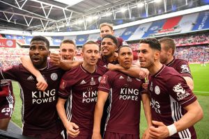 שחקנים של לסטר חגגו על כר הדשא בוומבלי עם דגל פלסטין