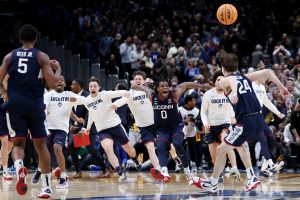 דיוק של קמרון בוזר הובילה ב-19 הפרש על ההאסקיז, שייטה לניצחון, אלא שקונטיקט חזרה, ובמהלך האחרון של המשחק ניצלה טעות של המדורגת הראשונה כדי לקלוע שלשה כמעט מהחצי: "ידעתי שאני חייב לקלוע את זה"