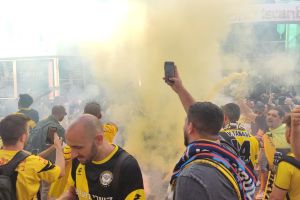 מאות מאוהדי הקבוצה הגיעו לבירת טורקיה לקראת משחק הקונפרנס ליג מול בשאקשהיר (20:45, ספורט2) ואף הדליקו רימוני עשן
