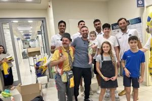 שחקני מכבי תל אביב הגיעו למחלקת ילדים במרכז הרפואי על שם שמיר כדי לשמח ולהעניק מתנות לחג: "מאחל לשובם של החטופים במהרה והחלמה מהירה של כל הפצועים", הוסיף הקשר