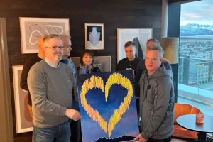 בבית המלון שבו מתאכסנת האלופה בנורבגיה, בן מנספורד נפגש עם נציגי השדולה שהגיעו במיוחד והעניקו שי מאמנית מקומית: "מקווים לעסוק רק בכדורגל", הודה להם המנכ"ל