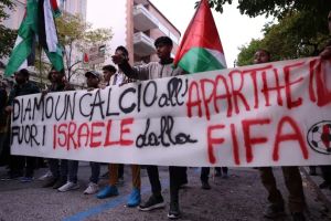 כמה אלפים צעדו ברחובות העיר, רגע לפני המשחק של ישראל מול איטליה. בעירייה זעמו לאחר שנטען כי היא "משתפת פעולה עם רצח העם"