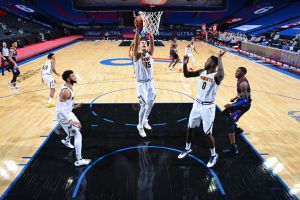 הקבוצה של דוק ריברס סובלת מנדבקים רבים בנגיף והגיע למשחק עם תשעה שחקנים בלבד. האריס כיכב עם 21 נק' עבור הנאגטס, דאבל-דאבל ליוקיץ' (15 נק' ו-12 ריב'). מנגד, הרוקי מקסי צלף 39 נק'