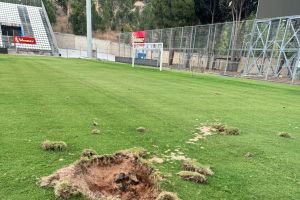 אחרי חמש נפילות במגרשי האימונים של הקבוצה, הפעם המגרש המרכזי ספג פגיעה ישירה במטח הטילים האחרון לעבר העיר. המשטח ניזוק, אך המקום היה נטוש ואין נפגעים בנפש