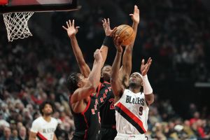 אחרי רצף של ארבעה ניצחונות, הבלייזרס נאלצו להסתדר ללא הכוכב ונכנעו לרפטורס החזקים. 21 נק' לשארפ והולידיי לא הספיקו