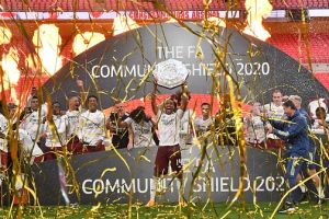 התואר הראשון של העונה הלך למחזיקת הגביע האנגלי, שניצחה את האלופה בבעיטות עונשין בתום 1:1 ב-90 דקות. ברוסטר היחיד שהחטיא מ-11 מטר, אובמיאנג ומינאמינו כבשו את השערים בזמן החוקי