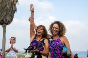 כ-240 שחייניות ושחיינים הגיעו לחוף בת"א כדי לחזק את השחיינית דבי צ'יטיז ולשחות יחד לזכר בנה, שנהרג בקרבות בעזה. במפגן עוצמתי, השחיינים יצרו מגן דוד ענק בכניסה למים