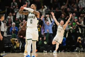 "דיים טיים" צלף מטר מאחורי קו השלוש וסידר למילווקי 142:143 בהארכה מול סקרמנטו. טריפל דאבל ליאניס, הזאבים ניצחו 105:109