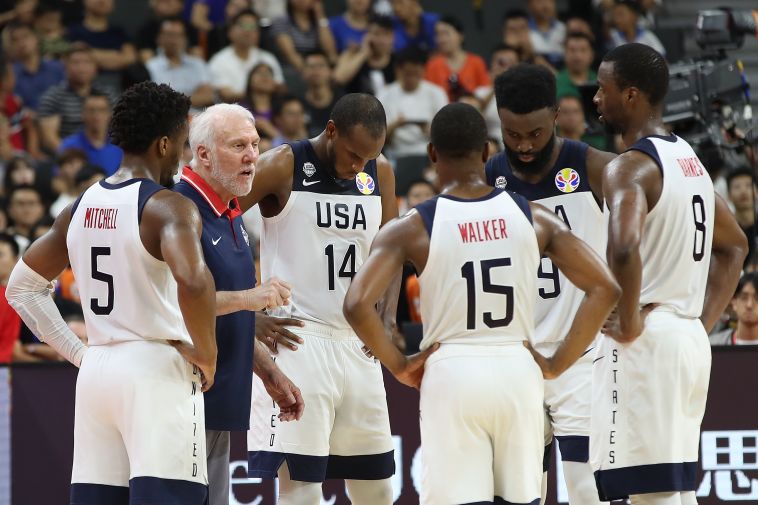 פופוביץ' ושחקני ארה"ב. בלאט לא הופתע מההפסד ברבע הגמר (Lintao Zhang/Getty Images)