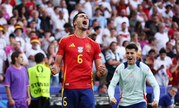 כמה קשה, ככה מתוק: נבחרת ספרד העפילה הערב (שישי) לחצי גמר היורו אחרי 1:2 סופר דרמטי על גרמניה המארחת. הרגע המכונן של המשחק התרחש כבר בתחילתו. פדרי נפצע אחרי תיקול של טוני קרוס ובדיעבר, הפציעה הזו רק עשתה טוב לספרד משום שהמחליף של פדרי היה דני אולמו. שחקן לייפציג היה זה שהעלה את נבחרתו ל-0:1 בדקה ה-51 ובישל את ה-1:2 של מיקל מרינו דקה לפני סיום ההארכה אחרי שפלוריאן וירץ קבע 1:1 דרמטי (89). ספרד תחכה בחצי הגמר למנצחת בין פורטוגל לצרפת והיא תצטרך להסתדר בלי שני שחקני ההגנה שלה: דני קרבחאל שהורחק לקראת הסיום ורובין לה נורמנד הבלם שספג צהוב במחצית הראשונה.