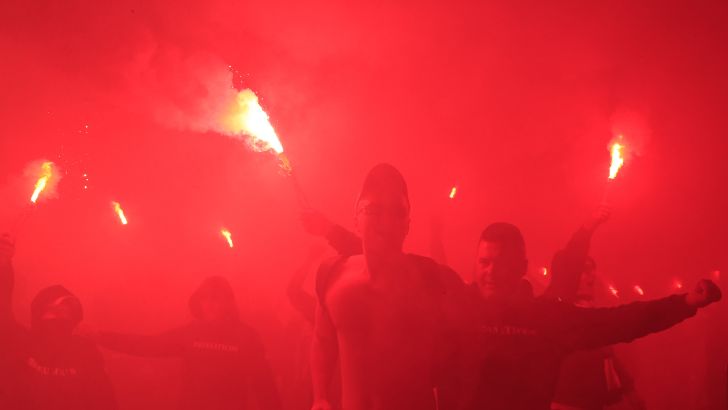 Zenica is literally on fire right now. Bosnian fans walking to the stadium ahead of the #EURO2016 playoff game! pic.twitter.com/kKOwNwxXyk
