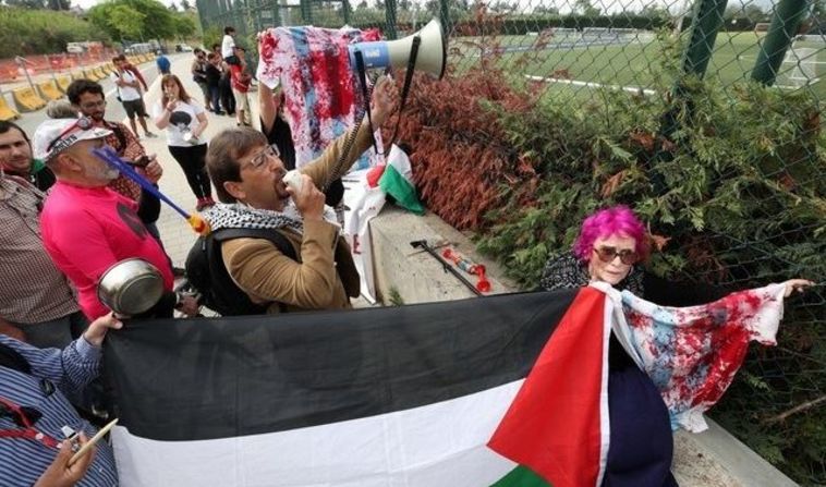 עוד פורסם היום כי לאימון נבחרת ארגנטינה היום בברצלונה הגיעו עשרות מפגינים אנטי-ישראלים שבין השאר הביאו עמם חולצות של ליאו מסי במדי האלביסלסטה מגואלות בדם. זו לא הפעם הראשונה שמגיעים אוהדים לאימון נבחרת ארגנטינה כדי למחות על הגעתם לישראל, אבל הפעם הייתה זו מחאה קיצונית ובוטה יותר מהקודמות. האוהדים אף דרכו על חולצות של ליאו מסי במחאה על כך שסמפאולי ושחקניו יעלו על כר הדשא בירושלים בשבת.