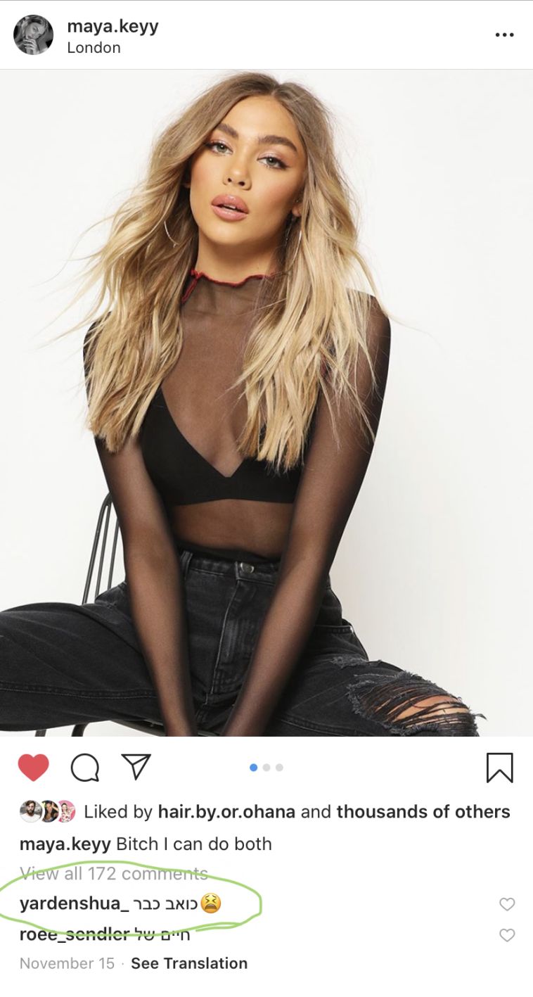 נכון להיום השניים לא עוקבים ולא מגיבים, אבל הזמן יעשה את שלו ונדע מה קורה בין הכדורגלן לדוגמנית בוודאות. בינתיים נספר שבעוד החלוץ עסוק בלהשיג תואר העונה עם קבוצתו מהכרמל, מאיה קיי נמצאת כרגע בישראל ומבלה עם אשת כדורגלן אחרת. קוראים לה ספיר אלחמיסטר, אחותה של נטע כמובן, שבעצמה יוצאת עם תומר אלוף, שמושאל ממכבי ת"א לבית"ר ת"א/בת ים. השתיים מתאמנות אצל שחר קיידר שמאמן בין היתר גם את מאור בוזגלו ולנו רק אכפת האם שועה חזר לשוק הרווקות, או שהוא עדיין מתכרבל עם היפייפיה הצעירה?
