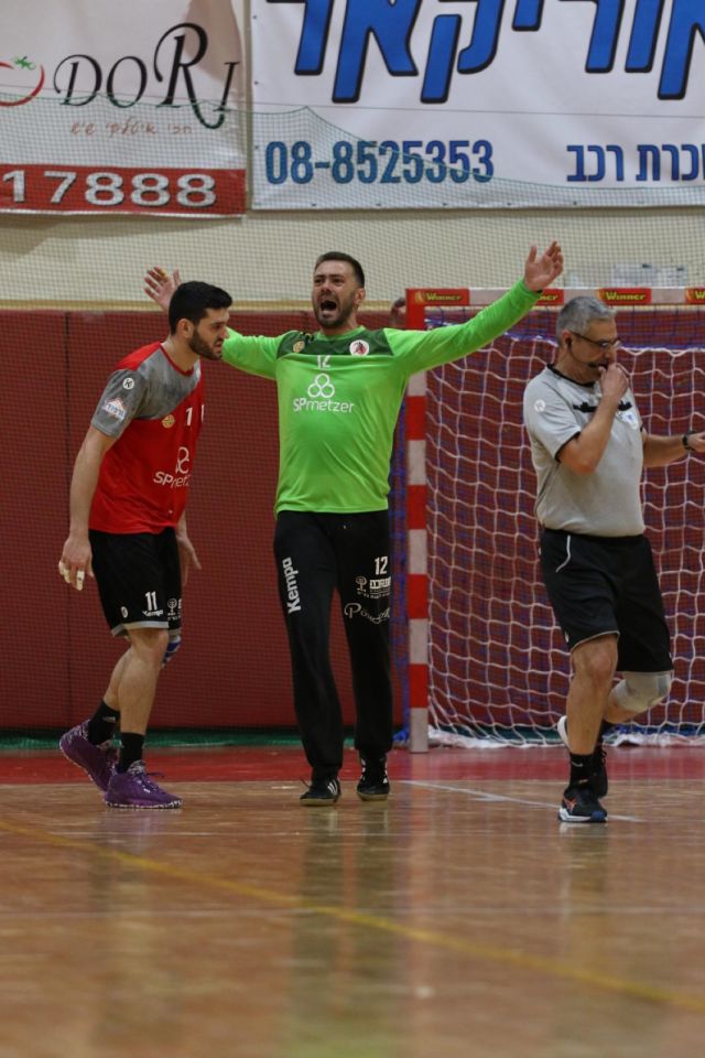 כאמור, הסדרה בין אשדוד להרצליה הייתה הצמודה והמותחת ביותר מבין הארבע. הרצליה ניצחה בחוץ את המשחק הראשון 33:34, אך הפסידה בביתה את המשחק השני בתוצאה 37:33. האשדודים ידעו ששוויון במשחק הערב יספיק לה, אך התוצאה הזו הייתה נזילה במיוחד. הרצליה השוותה את התוצאה 34 שניות לסיום, אך לא הצליחה להגיע לאיום נוסף, ואשדוד חגגה בסיום.