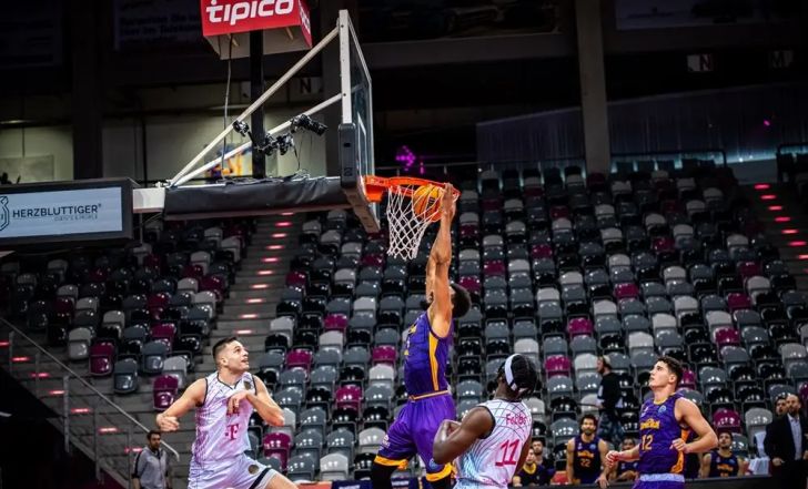 הסגולים הגיעו לגרמניה אחרי למעלה מחודש בלי משחק רשמי ועם סגל שכולל ארבעה זרים בלבד בעקבות שחרור הרכז אמד קייבר שלבקשתו חוזהו הותר, אבל שחקניו של עמית שרף, שבפתיחה עוד התקשו לחזור קצב ונזקקו למספר דקות כדי להוריד חלודה, בקאמבק נפלא יצאו מפיגור דו ספרתי, השוו וברחו מחדש לגרמנים כדי לחגוג ניצחון ראשון העונה, למעשה במשחקם הרשמי הראשון העונה להוציא את גביע ווינר.