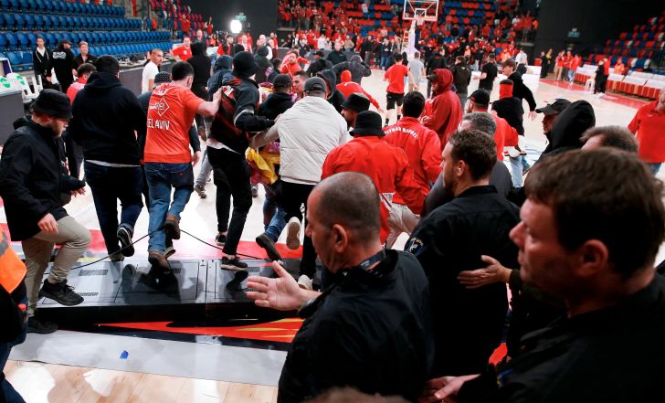 בסיום המשחק התרחשה מהומה אלימה על הפרקט כשאוהדי הפועל תל אביב נכנסו מהיציע שלהם אל יציע אוהדי חולון, חטפו להם מספר שלטים וניסו לחזור ליציע האדום בריצה. אוהדי חולון רדפו אחריהם ובין הצדדים התנהלה קטטה שהופרדה על ידי כוחות האבטחה במקום.