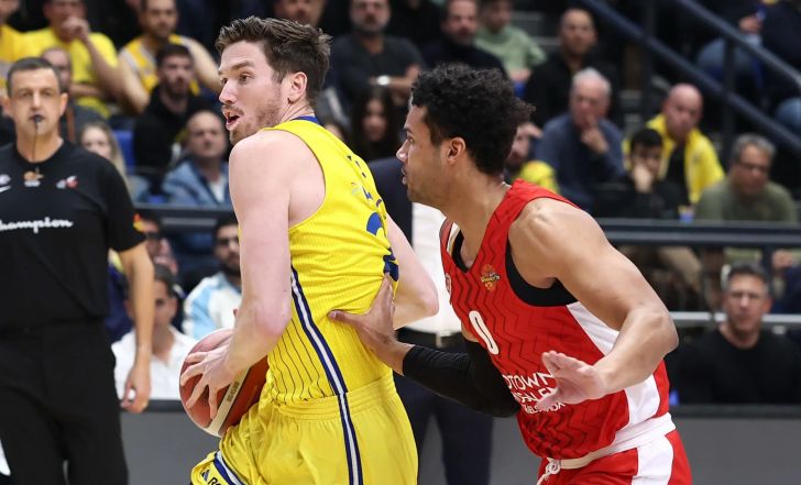 שחקן מכבי תל אביב, טי ג'יי ליף, מול שחקן הפועל ירושלים, ג'סטין סמית | דני מרון
