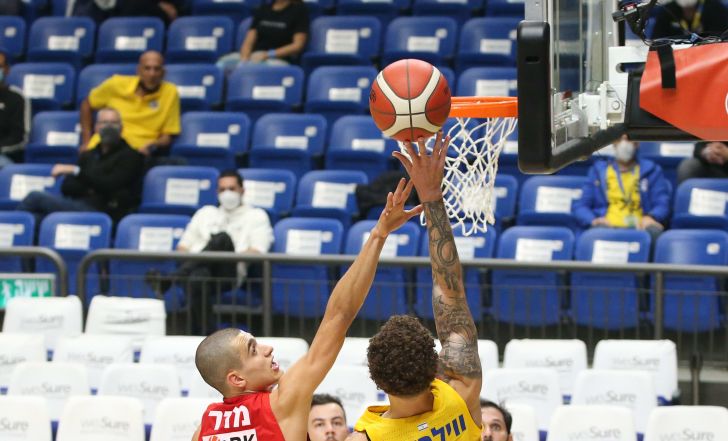 שחקן מכבי תל אביב סקוטי ווילבקין מול שחקן הפועל תל אביב ים מדר | אודי ציטיאט, .