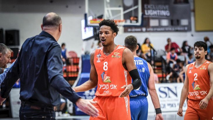 שחקן מכבי ראשון לציון אנתוני בראון עם המאמן דרור כהן