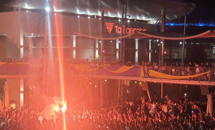 לילה מלא התרגשות עבר אמש (חמישי) על הפועל חולון ואוהדיה, שחגגו אליפות שנייה בהיסטוריה – וראשונה בתום סדרת פלייאוף, ועוד באולם הביתי. לאחר שהתאספו בחדר ההלבשה, שרו, רקדו והתיזו מים זה על זה, הצטלמו השחקנים עם הצלחת והטבעות, ויצאו לרחבה שמחוץ להיכל טוטו כדי לשמוח עם מאות האוהדים, שהמתינו להם עד השעה אחת בלילה.