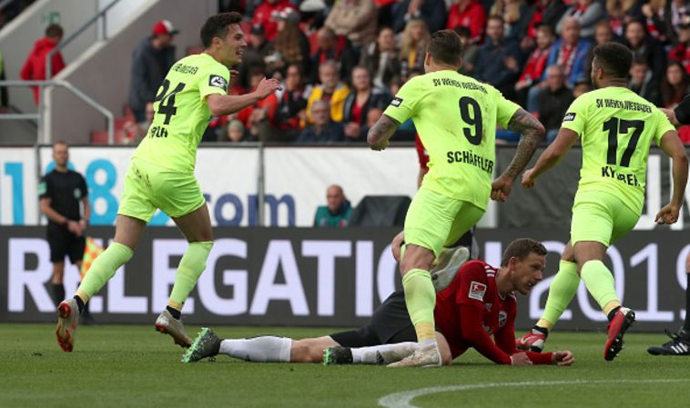 שחקני ויסבאדן חוגגים כל הדרך לבונדסליגה ה-2 (Gettyimages)