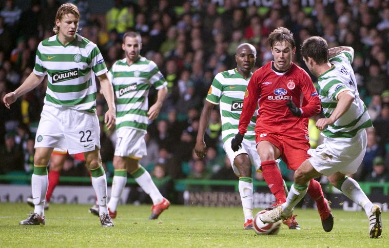 נאתכו במדי הפועל נגד סלטיק (Derek Blair/AFP via Getty Images)