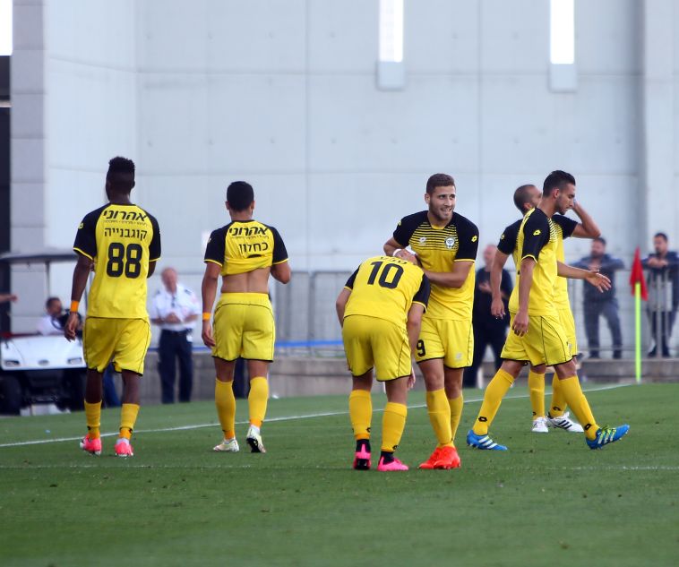 שחקני מכבי נתניה חוגגים במשחק העלייה. סיפור יוצא דופן (אודי ציטיאט)