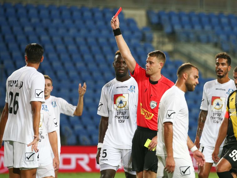 דקה 82: עכו נשארה בעשרה שחקנים. כדור חופשי של ערן לוי פגע בידו של עמית ביטון שפגע בחומה, השופט שלף לו כרטיס צהוב שני ושלח אותו למקלחת מוקדמת.