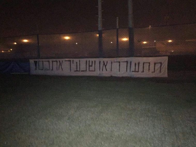 השלט שהשאירו אנשי הארגון בשבוע שעבר בקריית שלום