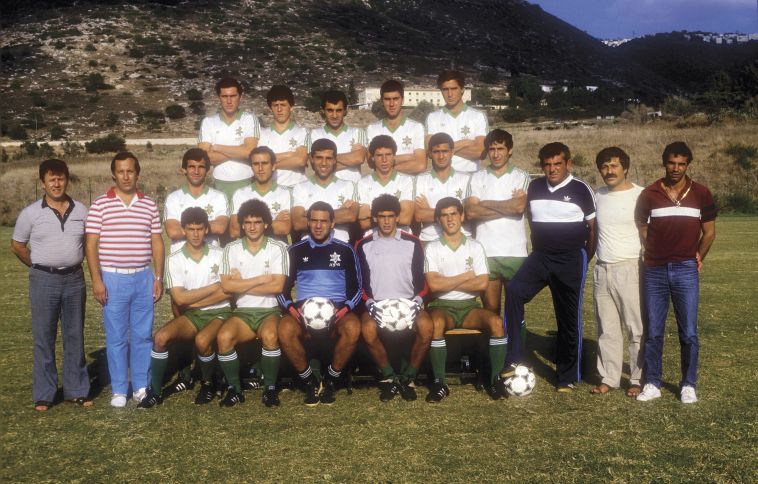 שלמה שרף ושחקני מכבי חיפה ב-1984 (עדי אבישי)