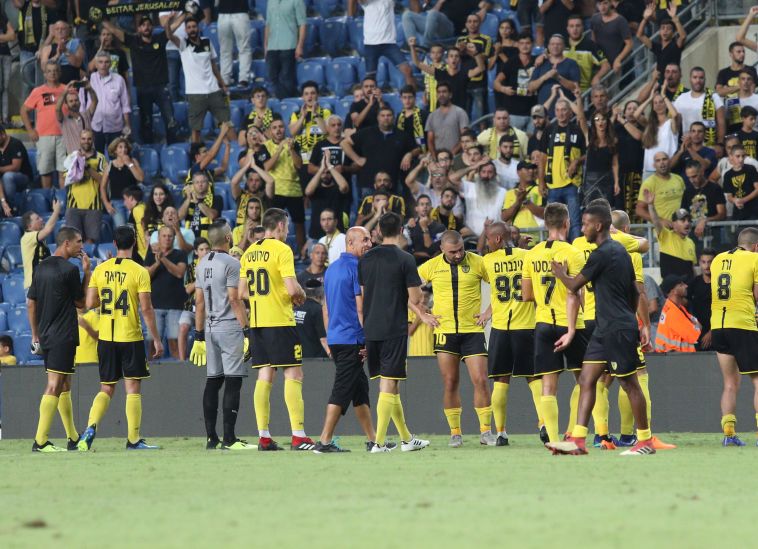 אוהדי בית"ר מודים לשחקנים. בקבוצה מצפים לדחיפה גם מחר (עדי אבישי)