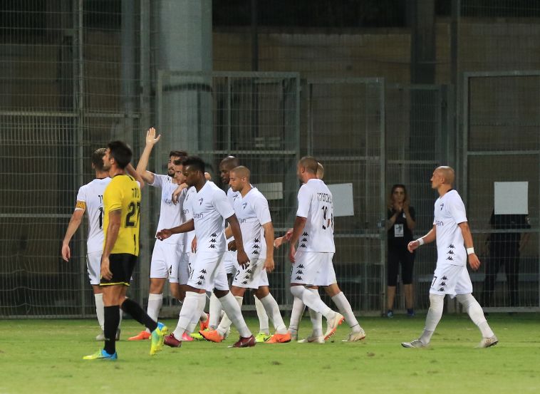שחקני קריית שמונה חוגגים על חשבון בית"ר ירושלים (ערן לוף)