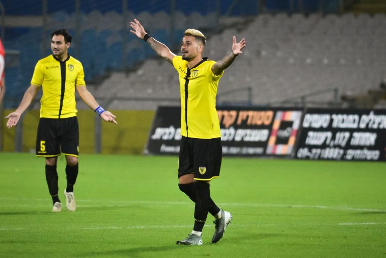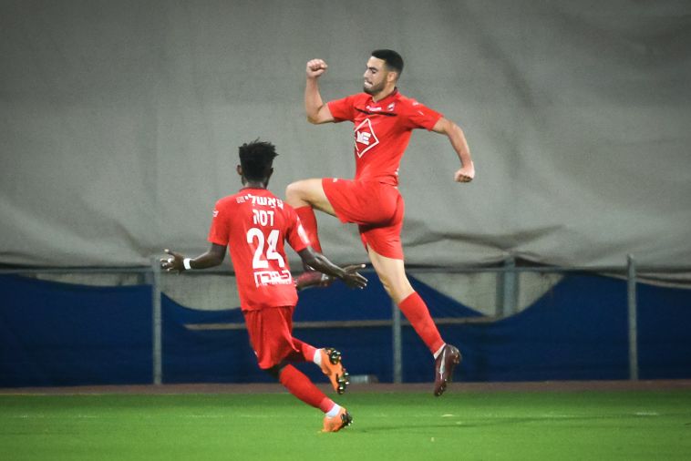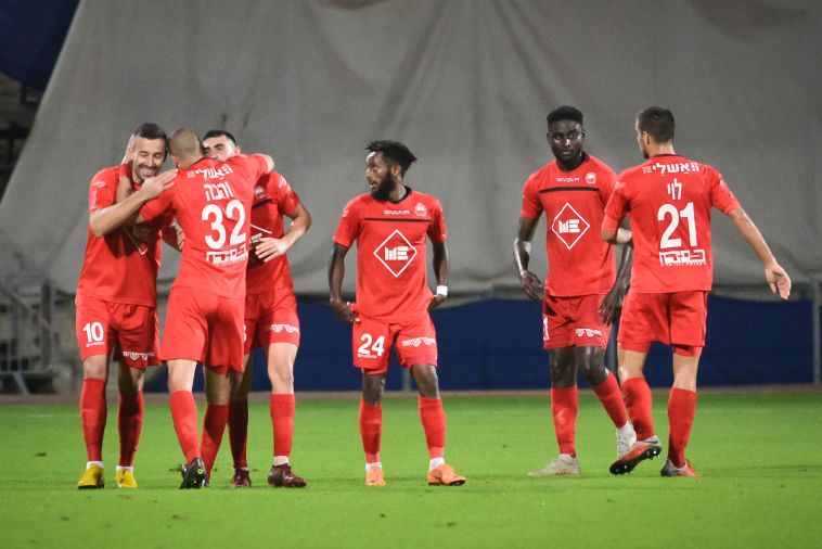 שחקני רעננה חוגגים ניצחון ראשון אי פעם על בית"ר ירושלים (אריאל שלום)