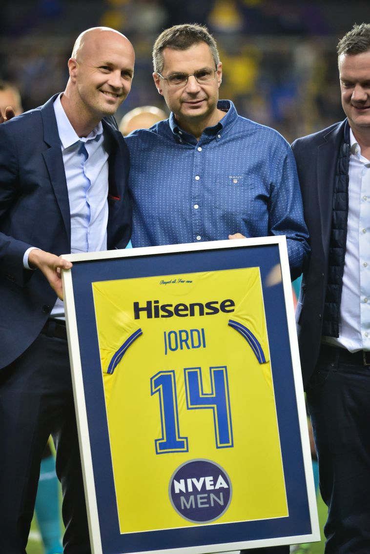 דקה 1: לפני המשחק נערך טקס הוקרה למנהל המקצועי והמאמן לשעבר של הצהובים ג'ורדי קרויף.