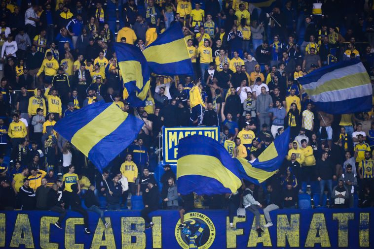 אוהדי מכבי תל אביב דואגים לצבע ביציעים (אריאל שלום)