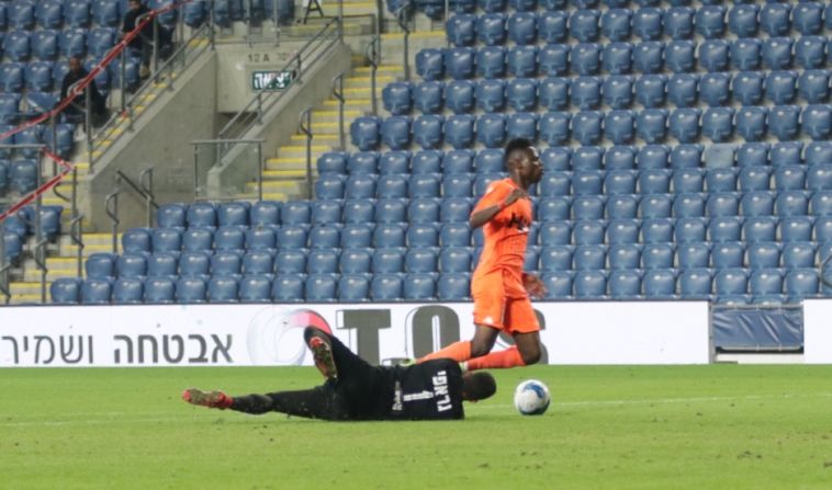 דקה 68: דודו ביטון המחליף קיבל מתנה גדולה כשקיבל את הכדור ברחבה אחרי טעות קשה של הכתומים, אבל התעמעמה ובעט אל גופו של שאבי.