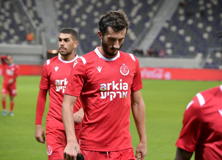 הסתבכו בתחתית. שחקני הפועל תל אביב בסיום (אריאל שלום)