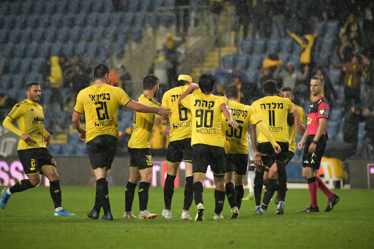 שחקני מכבי נתניה חוגגים (אריאל שלום)