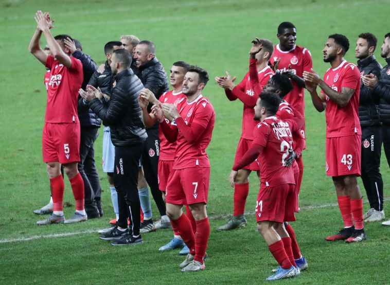שחקני הפועל תל אביב חוגגים. הישג חסר תקדים (דני מרון)