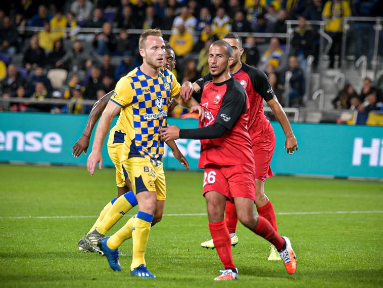 אביחי ידין שומר על דן גלזר אתמול. עשוי להחמיץ את נתניה (אריאל שלום)