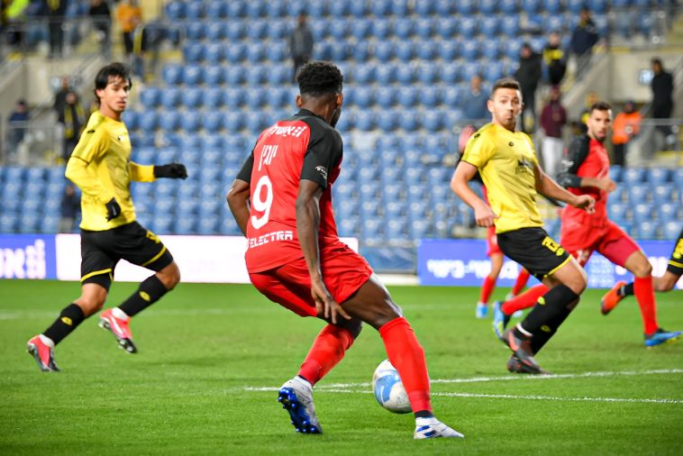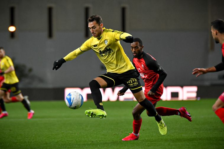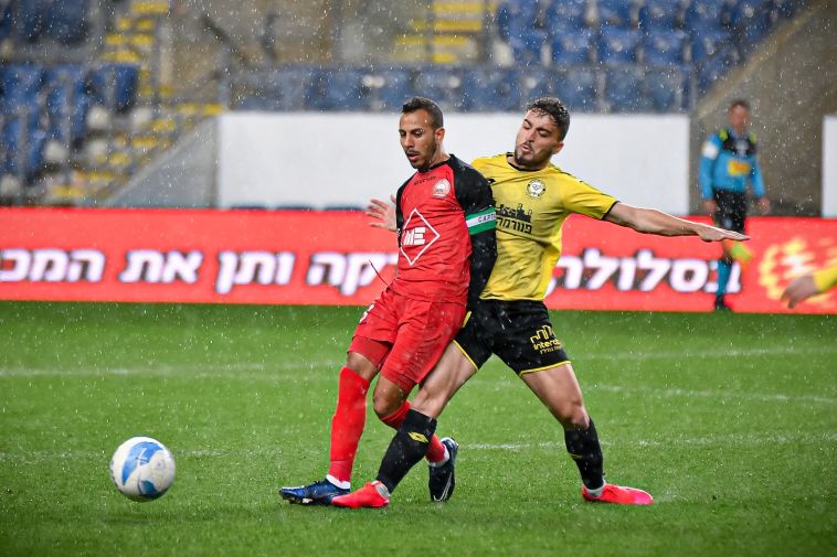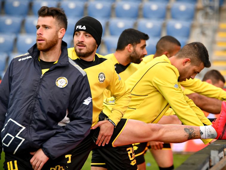 שחקני מכבי נתניה מתחממים (אריאל שלום)