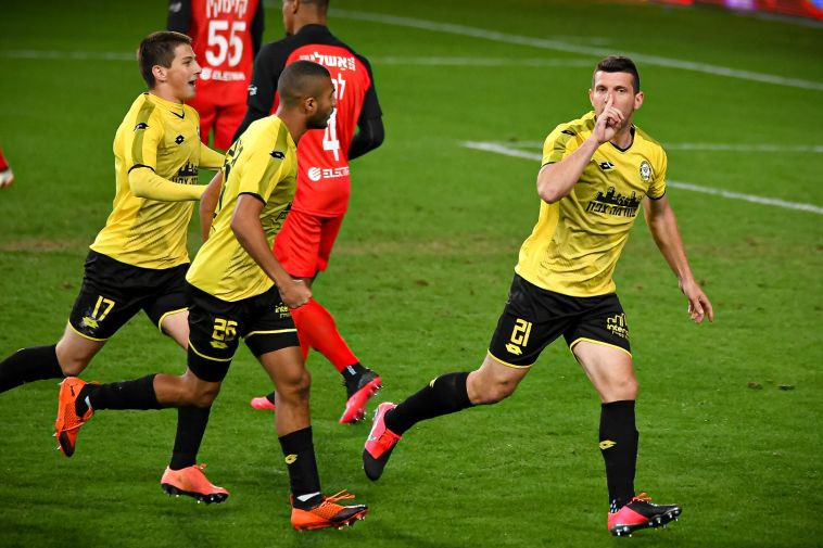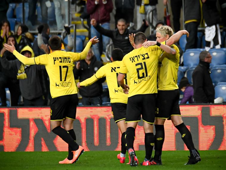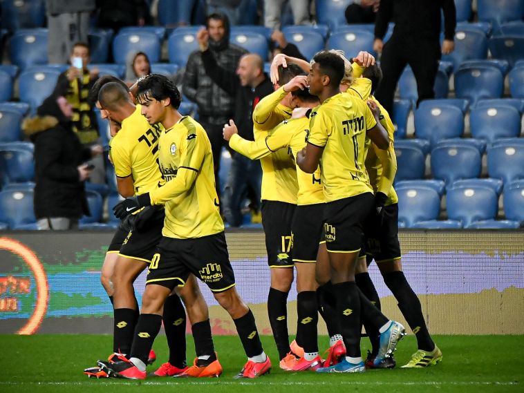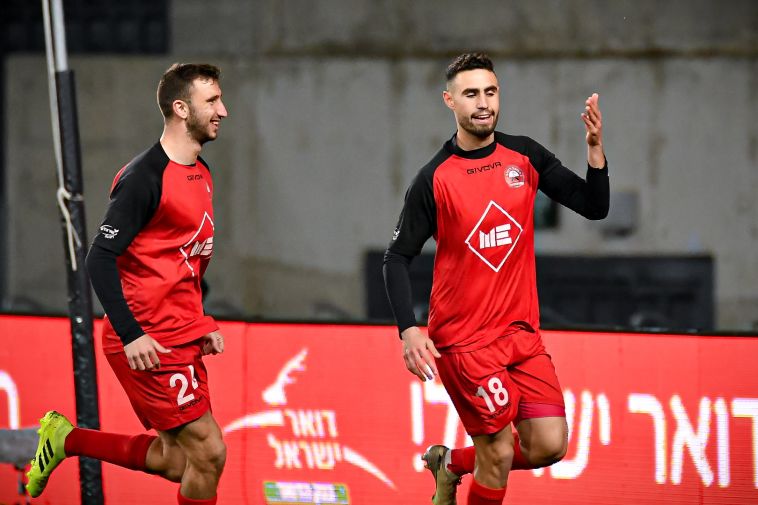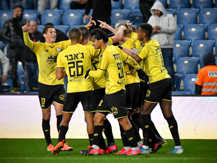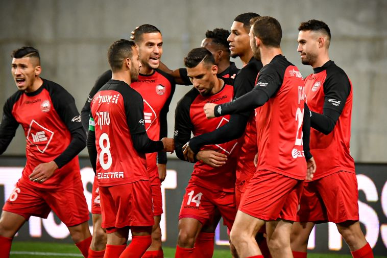 שחקני מכבי נתניה חוגגים (אריאל שלום)