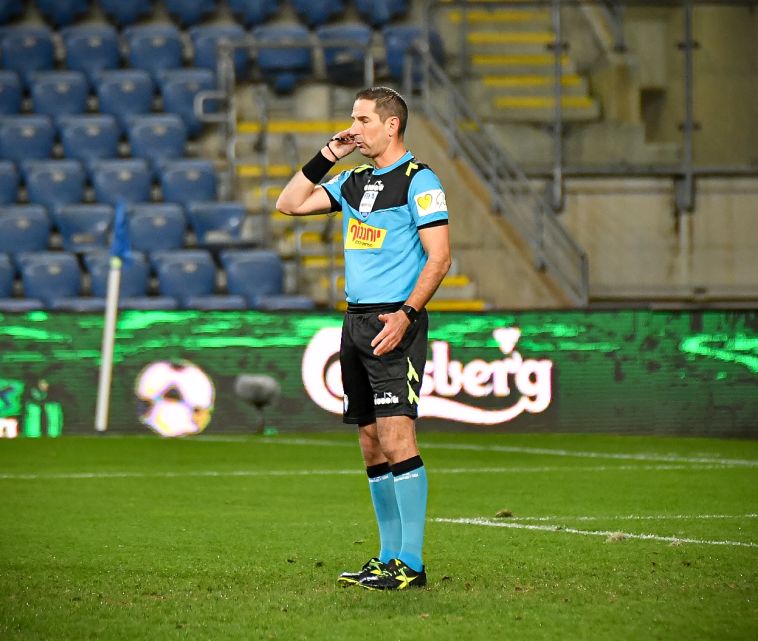 איתן שמואלביץ' מתייעץ עם שופטי ה-VAR (אריאל שלום)