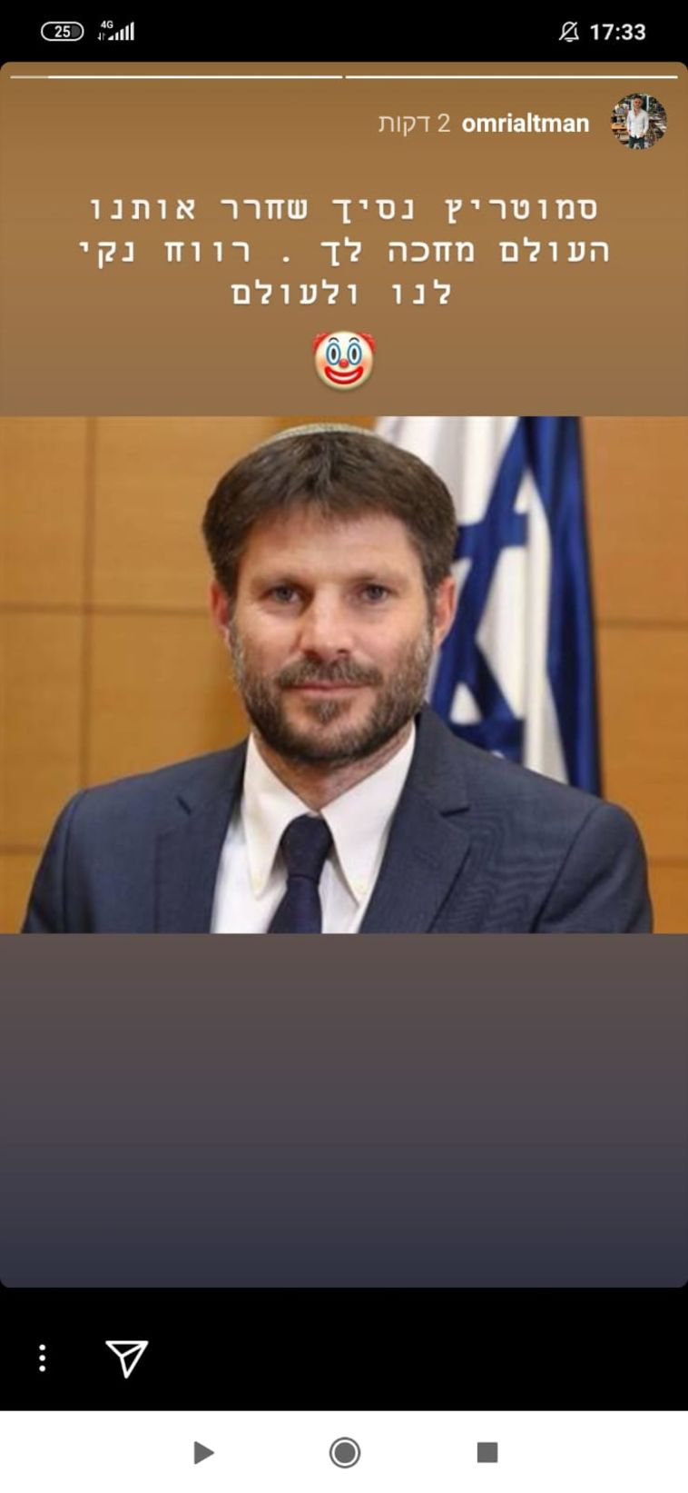 מי שמיהר להגיב לדבריו של סמוטריץ' הוא עומרי אלטמן מהפועל תל אביב, שפרסם בעמוד האינסטגרם שלו תמונה של חבר הכנסת, הוסיף אימוג'י של ליצן וכתב: "סמוטריץ' נסיך שחרר אותנו, העולם מחכה לך. רווח נקי לנו ולעולם".
