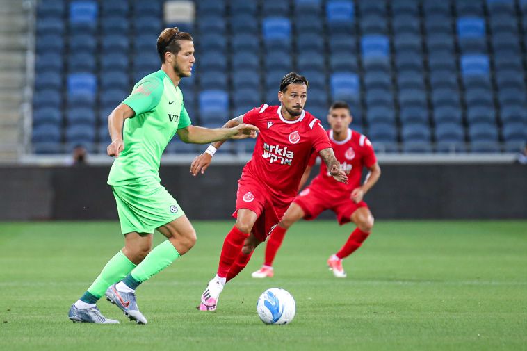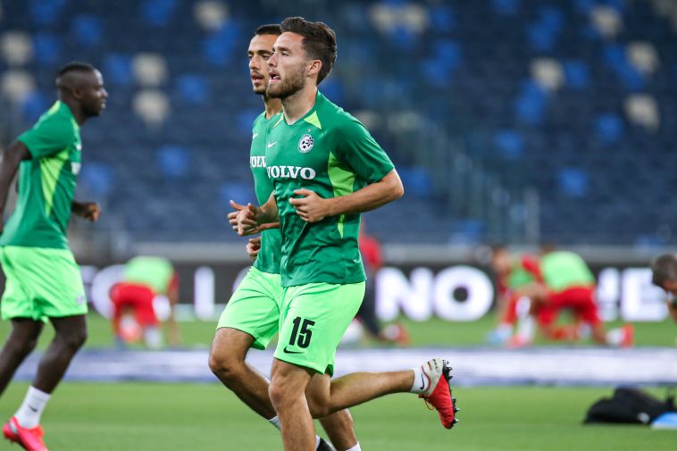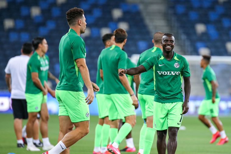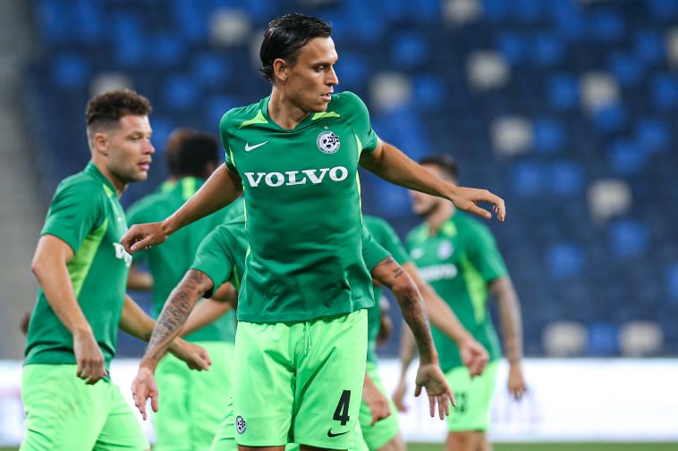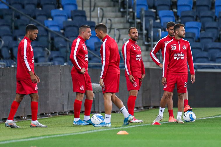 שחקני מכבי חיפה מתחממים (מאור אלקסלסי)