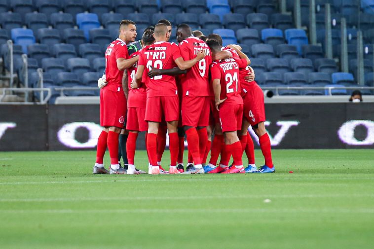 שחקני הפועל תל אביב לפני שריקת הפתיחה (מאור אלקסלסי)