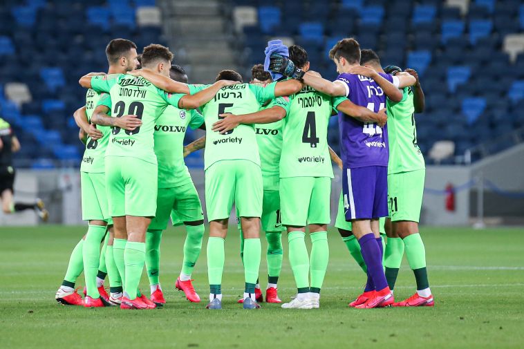 שחקני מכבי חיפה לפני שריקת הפתיחה (מאור אלקסלסי)
